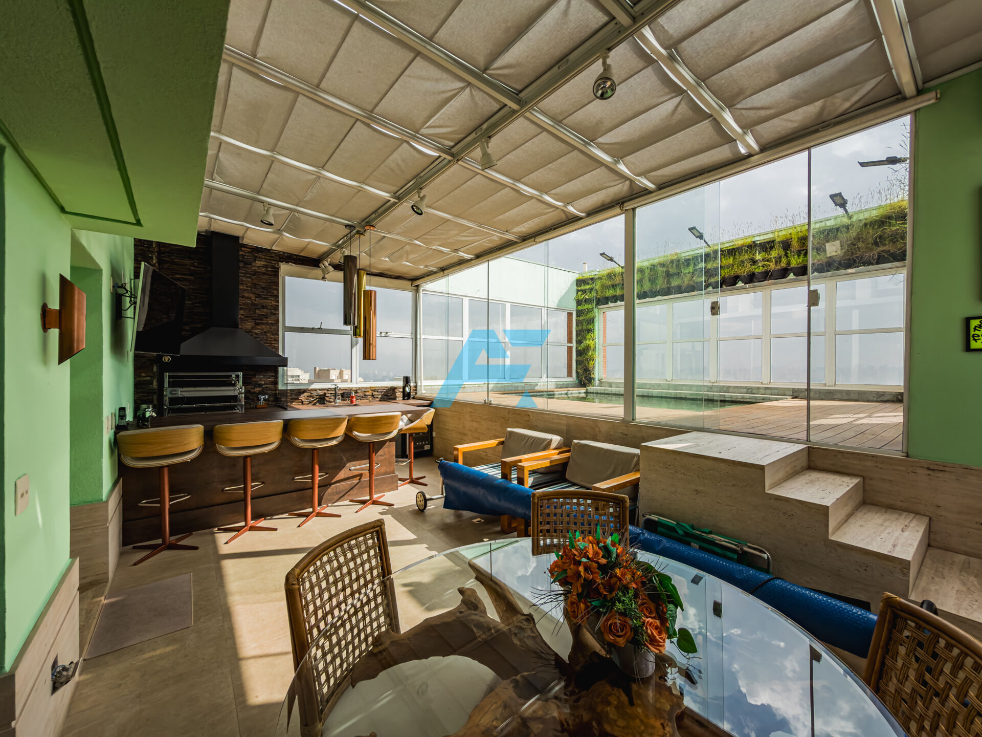 Cobertura de alto padrão com aproximadamente 380m², distribuídos em 3 suítes (sendo a master com 2 closets e hidromassagem), sala de cinema — com possibilidade de reversão para 4ª suíte — e 6 vagas de garagem + depósito e ponto para carro elétrico.